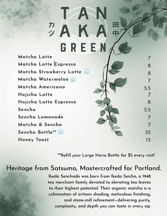 New matcha offerings now at Tanaka.
